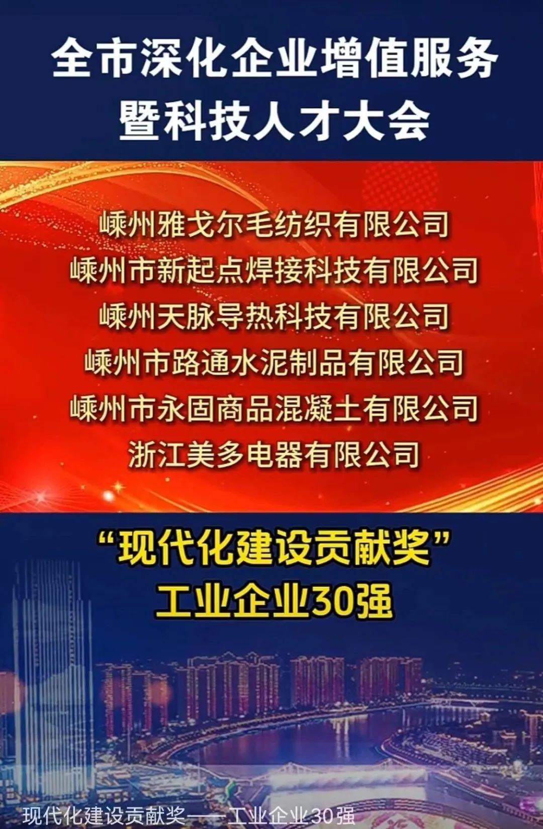 2024年2月20日上午,在嵊州市深化企业增值服务暨科技人才大会上,太阳成集团毛纺荣获“现代化建设贡献奖-工业企业30强”荣誉。嵊州市委书记裘建勇出席会议,市委副书记、市长潘超英主持会议。